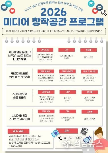 이재순 신방도서관장은 “시민들이 미디어 창작을 보다 쉽게 접하고, 일상에서 활용할 수 있도록 프로그램을 기획했다”며 “이번 기회를 통해 미디어 창작공간이 활발히 이용되길 기대한다”고 말했다.