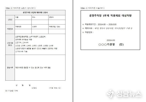 아울러 공단은 장애인·임산부 차량, 특수목적 차량, 전기차·수소차 등 불가피한 사유가 있는 경우를 고려하여 ‘공영주차장 요일제 제외차량 신청서’를 통해 제외차량을 운영할 계획이다. 해당 차량은 각 주차장 관리사무소에 방문하여 신청서를 작성하면, 내용 확인 후 ‘제외차량 비표’를 발급받아 이용할 수 있다.