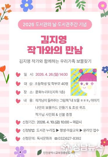 인천광역시교육청중앙도서관은 오는 26일, 초등학교 저학년 어린이와 가족을 대상으로 김지영 그림책 작가와의 만남을 운영한다.