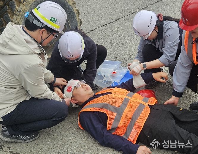 환경자원사업처는 매립 현장 내 중장비 및 반입 차량 간 충돌 사고를 사전에 예방하고, 사고 발생 시 신속한 구호 조치 역량을 강화하기 위해 실전 모의훈련을 진행했다.