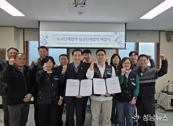 인천시 남동구도시관리공단은 최근 민주노총 전국공공운수 사회서비스노동조합 남동구도시관리공단 지부와 노사단체협약을 체결했다고 10일 밝혔다.