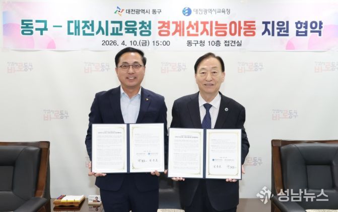 대전 동구는 10일 대전시교육청과 ‘경계선지능아동(느린학습자) 성장지원사업’의 원활한 추진을 위해 업무협약을 체결했다고 밝혔다.