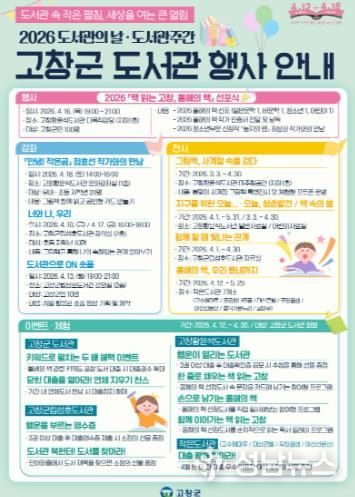 고창군도서관이 ‘제62회 도서관주간(12~30일)’을 맞아 ‘2026 책 읽는 고창, 올해의 책 선포식’을 중심으로 군민과 함께 독서문화 확산에 나선다.
