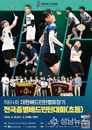 충남 서산시는 2026 대한배드민턴협회장기 전국종별배드민턴대회(초등부)가 4월 15일부터 21일까지 7일간 서산시민체육관과 서산어울림체육관에서 개최된다고 밝혔다.