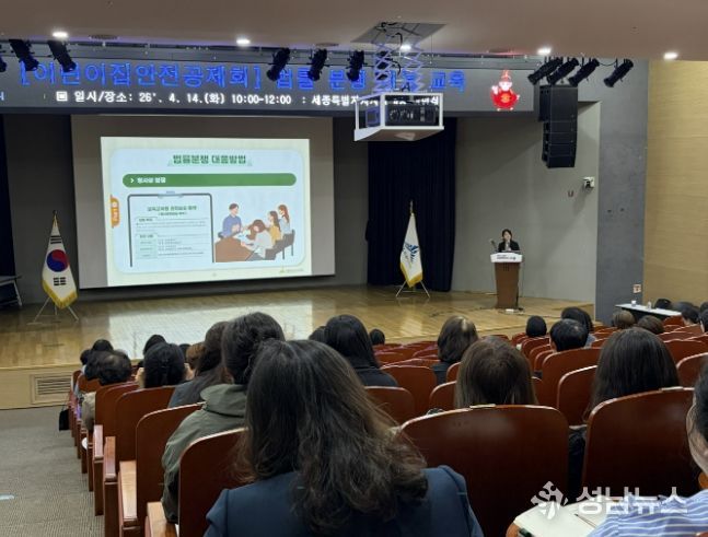 세종특별자치시육아종합지원센터는 4월 14일 세종특별자치시청 4층 여민실에서 관내 어린이집 보육교직원을 대상으로 200여명을 대상으로‘2026년 법률 분쟁 대응 교육’을 실시했다고 밝혔다.