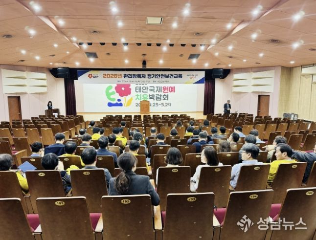 태안군이 지난 15일부터 이틀간 군청 대강당에서 부서장 등 관리감독자 40여 명이 참석한 가운데 2026년 관리감독자 정기 안전보건교육 집체교육을 실시했다.