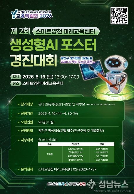 이기재 양천구청장은 “이번 경진대회는 ‘Y교육박람회 2026’의 열기를 권역별 미래교육센터로 확산시켜 모든 세대가 미래 기술을 경험할 수 있도록 하기 위해 마련됐다”며, “AI부터 코딩, 드론까지 다양한 미래형 콘텐츠를 통해 4차 산업혁명 시대에 필요한 창의적 문제해결 능력과 융합 역량을 키울 수 있기를 기대한다”고 말했다.