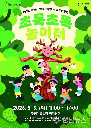 부평구문화재단은 어린이날인 5월 5일 부평아트센터 야외광장과 잔디마당에서 ‘2026 부평키즈페스티벌 × 굴포천천히’의 일환으로 ‘초록초록 놀이터’를 개최한다.