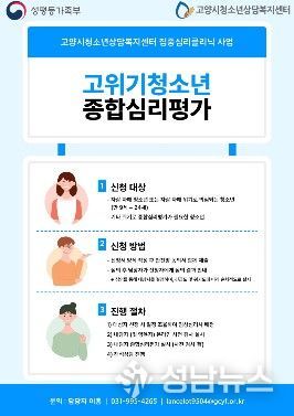 고양시청소년재단 청소년상담복지센터는 2026년 신규사업 ‘고위기청소년종합심리평가’를 운영한다고 16일 밝혔다.