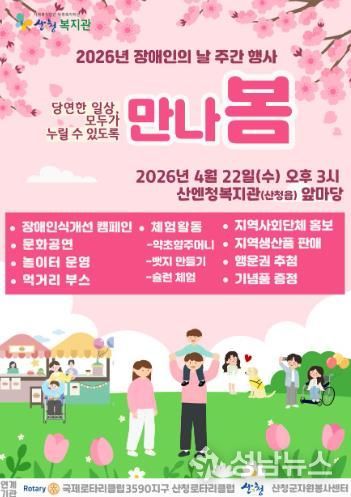 산엔청복지관은 장애인의 날을 맞아 ‘만나봄’ 행사를 오는 22일 복지관 앞마당에서 개최한다고 17일 밝혔다.