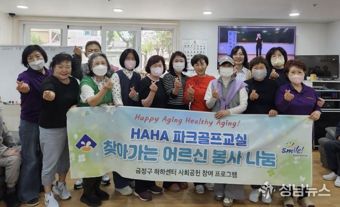 부산 금정구 하하센터(금사동 소재)는 지난 14일 신노년 건강강좌 파크골프교실 수강생들이 관내 어르신 주간보호센터를 방문해 찾아가는 재능기부 봉사활동을 실시했다고 밝혔다.