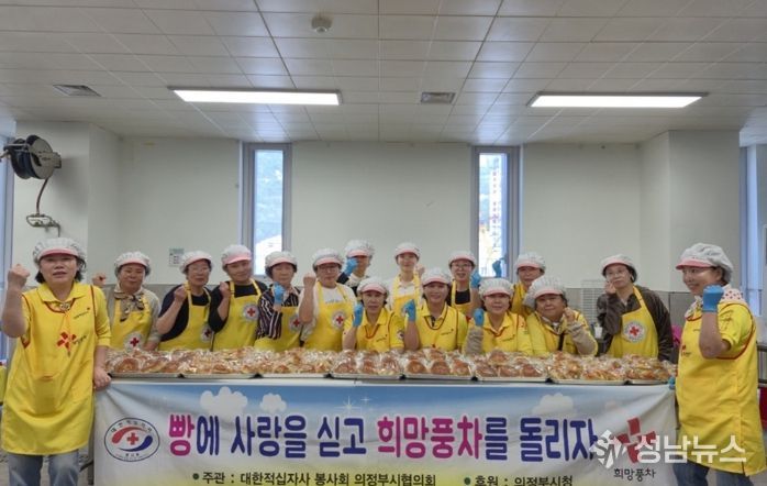 의정부시는 4월 15일 대한적십자사봉사회 의정부시협의회가 북부봉사관 2층 빵나눔터에서 ‘빵에 사랑을 싣고 희망풍차를 돌리자’ 제빵봉사 2회차 활동을 진행했다고 밝혔다.