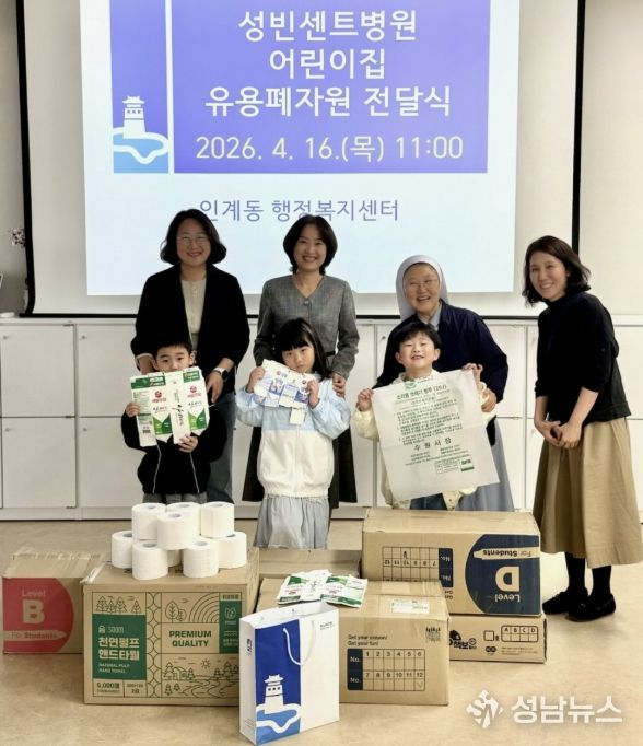 수원시 팔달구 인계동은 지난 16일 오전, 성빈센트병원 어린이집으로부터 아이들이 정성껏 모은 유용 생활 폐자원을 전달받았다고 밝혔다.