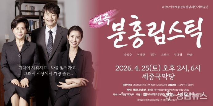여주세종문화관광재단이 오는 4월 25일, 예술경영지원센터의 공모사업인 '공연예술 지역 유통지원 사업'의 일환으로 베테랑 배우들이 참여한 창작 연극‘분홍립스틱’을 세종국악당에서 개최한다.