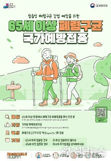 폐렴구균 예방접종은 65세 이상을 대상으로 평생 1회 무료 지원되고 있으며, 주소지와 관계없이 가까운 위탁의료기관에서 접종받을 수 있다.