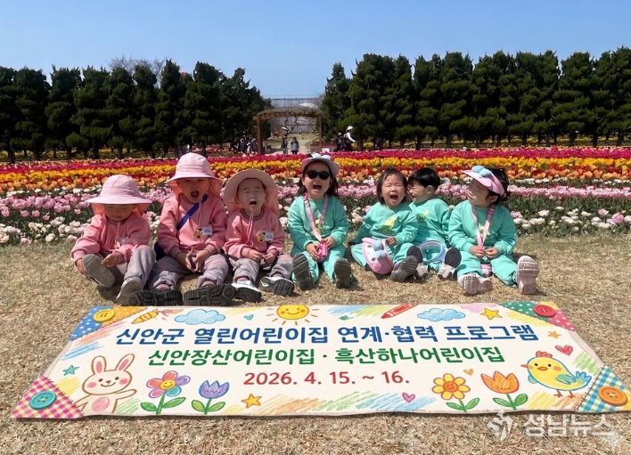 신안군 국공립 어린이집인 흑산하나어린이집과 신안장산어린이집이 4월 15일부터 16일까지 1박 2일 일정으로 임자면 ‘2026 섬 튤립축제’를 방문하고, 열린어린이집 간 연계·협력 공동 캠핑 프로그램을 운영했다.