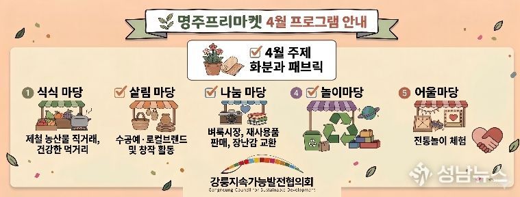 강릉지속가능발전협의회(상임회장 김태경)가 주최·주관하는 '2026년 4월 명주프리마켓'이 오는 18일 11시부터 16시까지 강릉 대도호부 관아에서 개최된다.