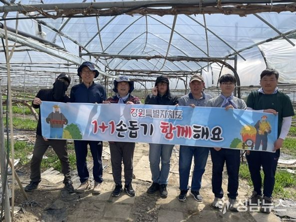 강원특별자치도 축산기술연구소는 본격적인 농번기를 맞아 4월 18일, 춘천시 사북면 고성리 포도 재배 농가를 찾아 ‘농촌 일손 돕기’ 봉사활동을 실시했다.