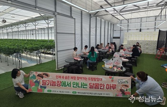 이어 18일에는 7가정, 18명이 참여한 가운데, 남면 베리신남딸기 농장에서 ‘딸기농장에서 만나는 달콤한 하루’ 프로그램이 진행됐다.