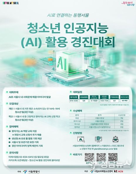 서울시는 청소년이 인공지능(AI)을 활용해 지역사회 문제해결 아이디어를 제안하고 이를 공공정책으로 연결하는 '2026 청소년 인공지능(AI) 활용 경진대회'를 개최하고 4월 30일까지 참가자를 모집한다.