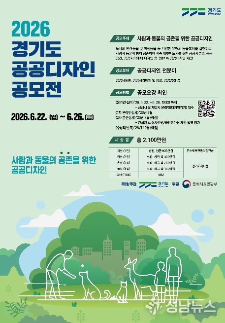 경기도가 ‘사람과 동물의 공존을 위한 공공디자인’이란 주제로 제20회 ‘2026년 경기도 공공디자인 공모전’을 6월 22일부터 26일까지 개최한다.