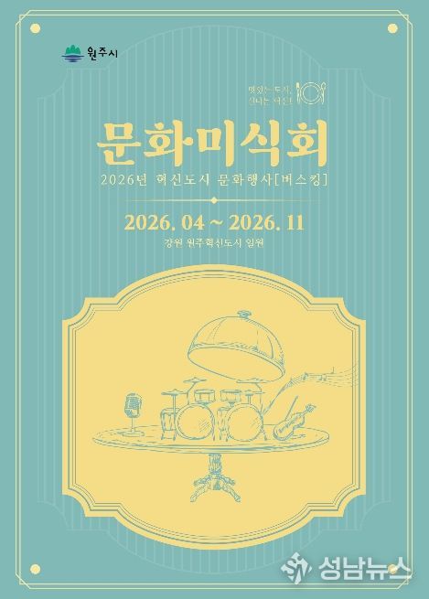 원주시는 오는 21일 낮 12시, 건강보험심사평가원 1사옥 앞 야외 공연을 시작으로 ‘2026년 혁신도시 문화미식회’의 막을 올린다. 이어 25일 오후 2시에는 혁신도시 미리내사거리 분수광장에서 버스킹 공연을 진행한다.