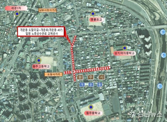 원주시상하수도사업소는 깨끗한 수돗물 공급을 위해 5월부터 ‘개운동 도말리길-개운로 일원 노후상수관 교체공사’를 추진한다.