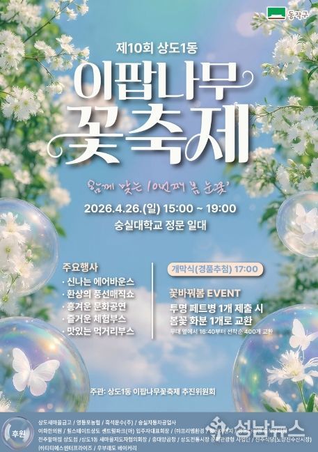동작구는 오는 26일 숭실대학교 정문 일대(상도로 369)에서 ‘제10회 이팝나무 꽃 축제’를 개최한다고 밝혔다.