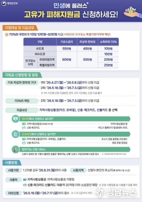 서천군이 중동전쟁 여파에 따른 고유가·고환율·고물가 상황으로 어려움을 겪는 군민들을 위해‘고유가 피해지원금’지급을 위한 본격적인 실행 단계에 돌입했다.
