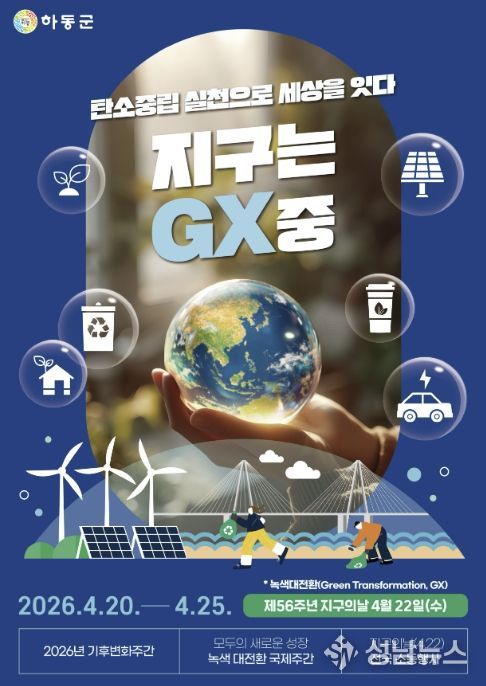 하동군은 제56주년 지구의 날을 맞아 4월 20일부터 24일까지 ‘제18회 기후변화주간’을 운영한다고 밝혔다.