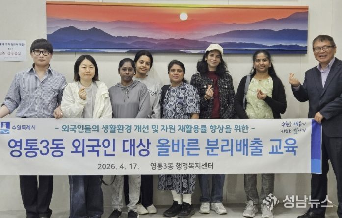 한편, 영통3동 행정복지센터는 관내 수원출입국외국인청을 방문해 ‘찾아가는 외국인 분리배출 교육’을 실시할 계획이다.