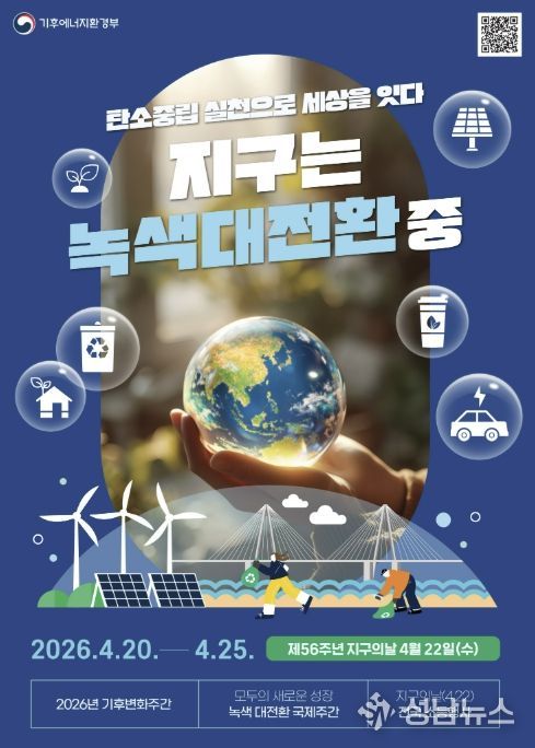 화성특례시는 제56주년 지구의 날(4월 22일)을 맞아 4월 20일부터 24일까지 ‘기후변화주간’을 운영하고, 시민 참여형 탄소중립 실천 캠페인을 추진한다.