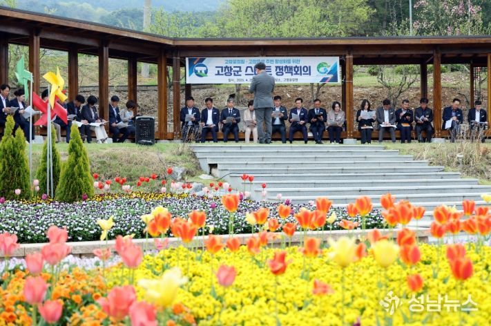 전북 고창군이 20일 봄꽃이 만개한 꽃정원에서 스마트정책회의(간부회의)를 열고 “꽃정원을 주민여가 공간과 체류형 관광의 핵심으로 만들겠다”고 강조했다.