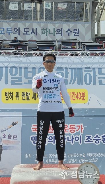 양평군은 지난 19일 경기도 수원종합운동장에서 양평군 홍보대사이자 국제 환경운동가로 활동 중인 ‘맨발의 사나이’ 조승환 씨가 인간의 한계를 넘어서는 기록을 세웠다고 밝혔다.