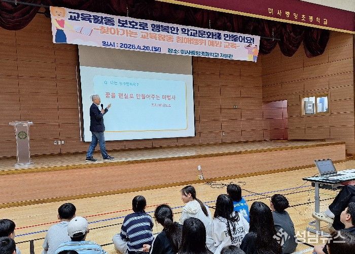 이번 교육은 인근 미사초등학교 김혁동 교감이 강사로 참여해 진행됐으며, 교육활동 침해행위에 대한 이해를 높이고 예방 의식을 함양하기 위해 마련됐다.