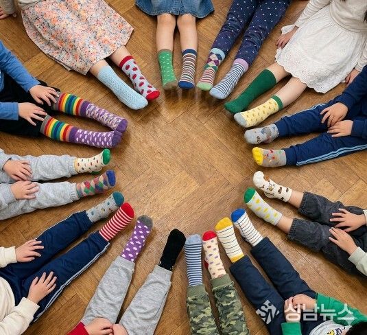 가장 큰 호응을 얻은 프로그램은 ‘달라도 짝이 되는 달짝양말 파티’였다. 이날 아이들과 교직원은 서로 다른 색과 모양의 양말을 신고 등원하며 ‘다름’을 자연스럽게 표현했다. 유아들은 동화 ‘짝짝이 짝꿍 양말 파티’를 감상한 뒤 자신만의 ‘달짝양말’을 디자인해 전시하며 다양성의 의미를 체험했다.