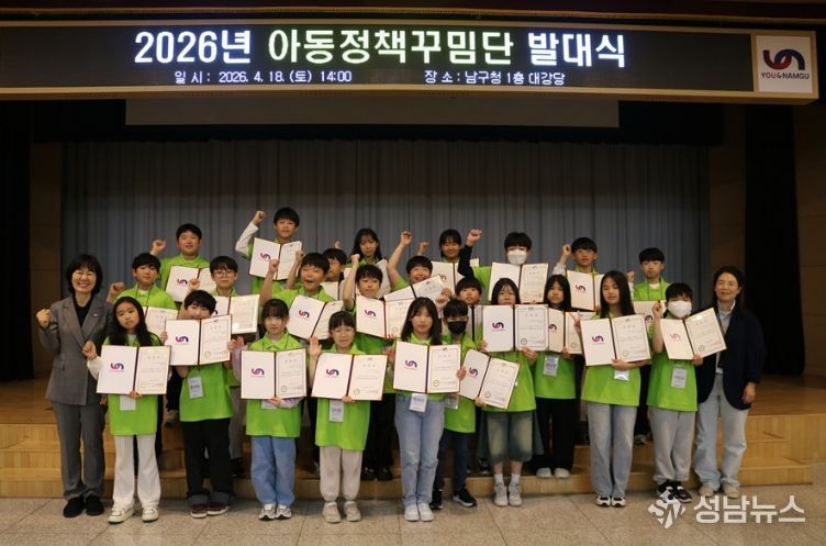 부산 남구는 지난 4월 18일 구청 1층 대강당에서 '2026년 아동정책꾸밈단 발대식'을 개최하고, 아동 참여 기반 정책 활동을 본격적으로 시작했다고 밝혔다.