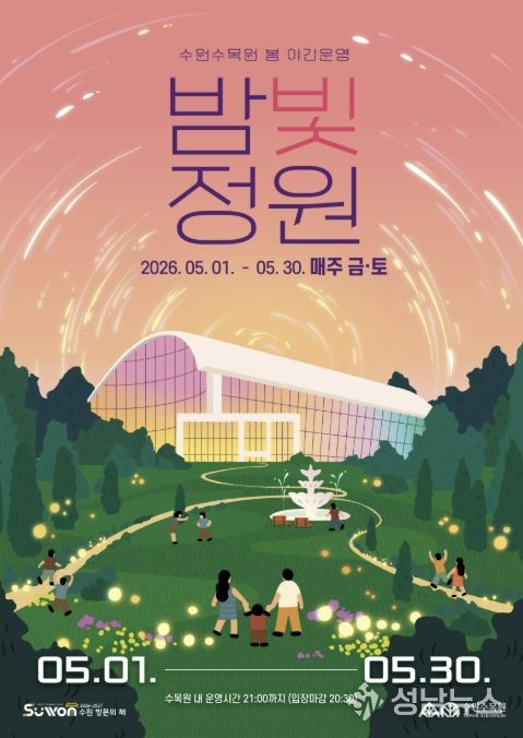 수원특례시가 5월 1일부터 30일까지 매주 금·토요일 일월·영흥수목원에서 ‘2026년 수원수목원 봄 밤빛정원’을 연다.