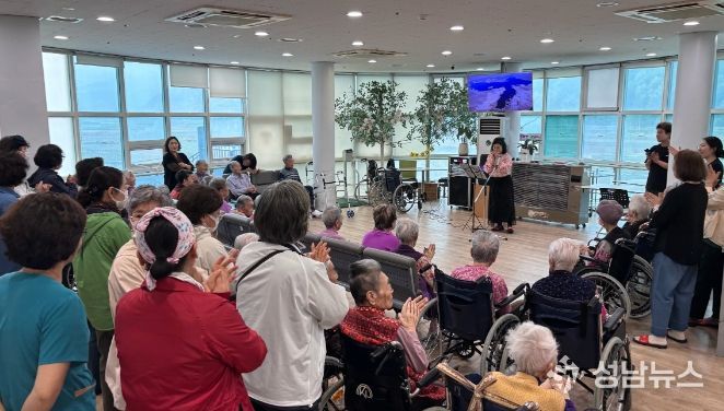 행사는 강영남 회원의 감미로운 오카리나 연주로 시작됐으며, 이어지는 회원들의 노래 공연으로 요양원 안은 오랜만에 웃음꽃과 활기로 가득 찼다.