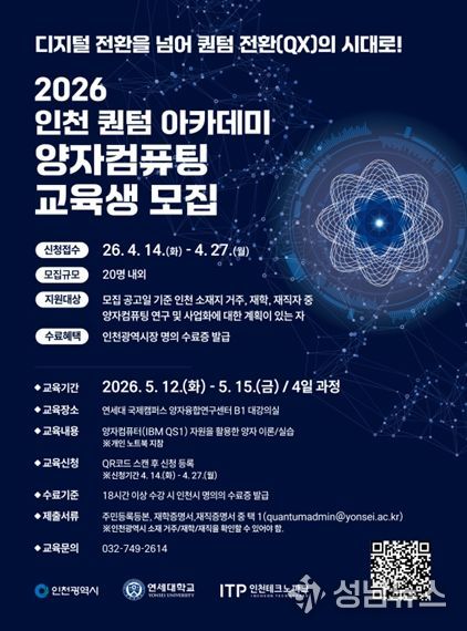시는 연세대학교와 협력해 ‘2026 인천 퀀텀 아카데미’의 교육생을 모집한다.