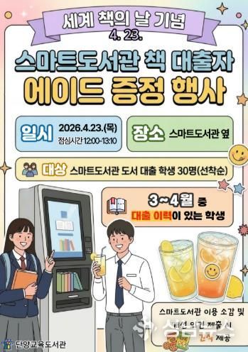 행사는 4월 23일 점심시간에 단양중학교 1층 스마트도서관 옆에서 진행될 예정이다.