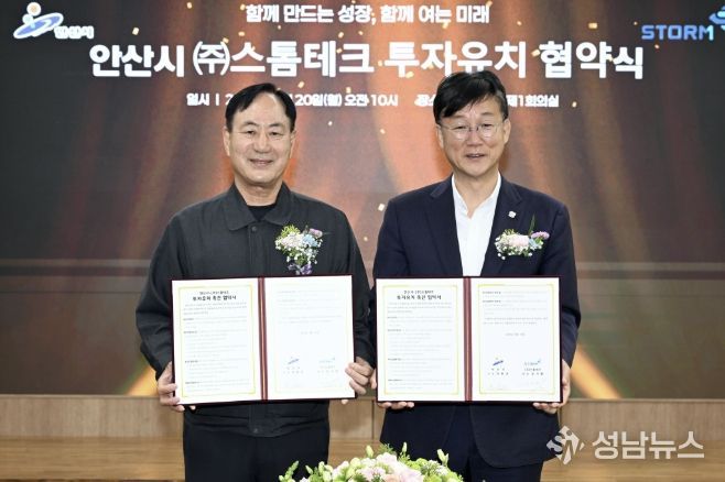 안산시는 지난 20일 코스닥 상장기업 ㈜스톰테크와 제2공장 신축 및 투자 확대를 위한 협약을 체결했다고 21일 밝혔다.