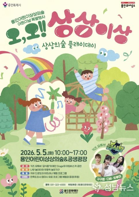 용인문화재단은 오는 5월 5일 어린이날을 맞아 용인어린이상상의숲에서 2026년 어린이날 특별행사 ‘오, 오! 상상이상’을 개최한다고 밝혔다.