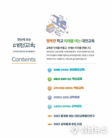 대전교육과학연구원 대전교육정책연구소는 2025년 대전교육 주요 정책의 성과를 종합적으로 분석한 ‘한눈에 보는 대전교육’을 발간했다고 밝혔다.