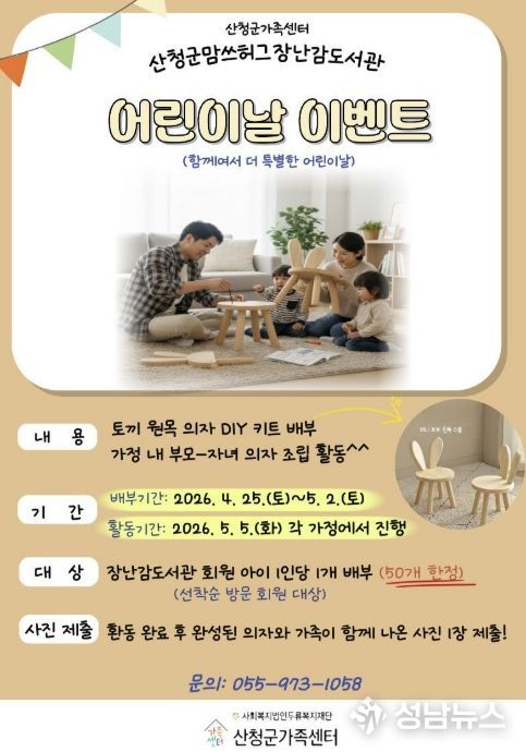 산청군가족센터는 어린이날을 맞아 ‘함께여서 더 특별한 어린이날’사업을 추진한다고 21일 밝혔다.