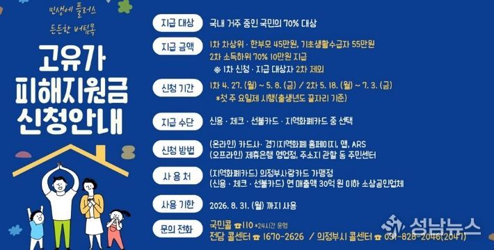 의정부시는 중동전쟁으로 촉발된 고유가‧고물가로 인한 국민 부담을 경감하고자 ‘고유가 피해지원금’ 신청을 4월 27일부터 접수한다.