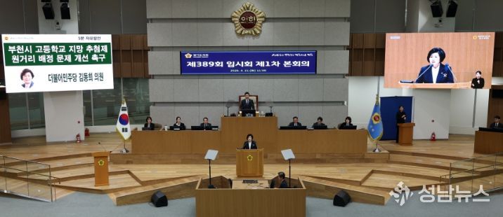 경기도의회 여성가족평생교육위원회 김동희 부위원장(더불어민주당, 부천6)은 제389회 경기도의회 임시회 제1차 본회의 5분 자유발언을 통해 부천시 고등학교 지망 추첨제 운영 과정에서 발생하고 있는 원거리 배정 문제를 지적하고 제도 개선을 강력히 촉구했다.