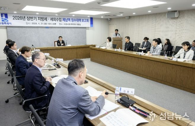 수원특례시는 21일 시청 상황실에서 김현수 제1부시장 주재로 상반기 징수대책보고회를 열고, 징수 부서별 징수목표액과 징수 상황을 점검했다.