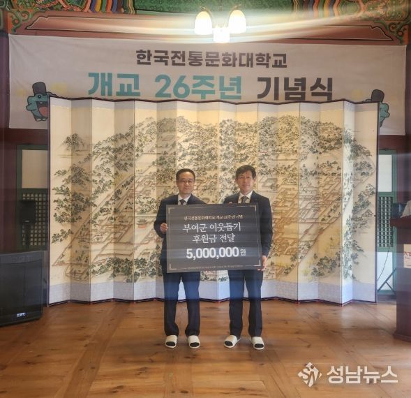 한국전통문화대학교 교직원일동은 개교 26주년 기념행사에서 저소득 가구의 초·중·고 학생 장학금으로 사용해 달라며 이웃돕기 성금 500만 원을 부여군에 기탁했다고 22일 밝혔다.