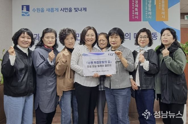 수원시 영통구 매탄3동은 지난 21일, 매탄3동 새마을부녀회가 ‘수원 독립운동의 길 조성 모금 릴레이’에 전 회원 동참 의사를 밝히며 뜻깊은 참여를 이어갔다고 밝혔다.